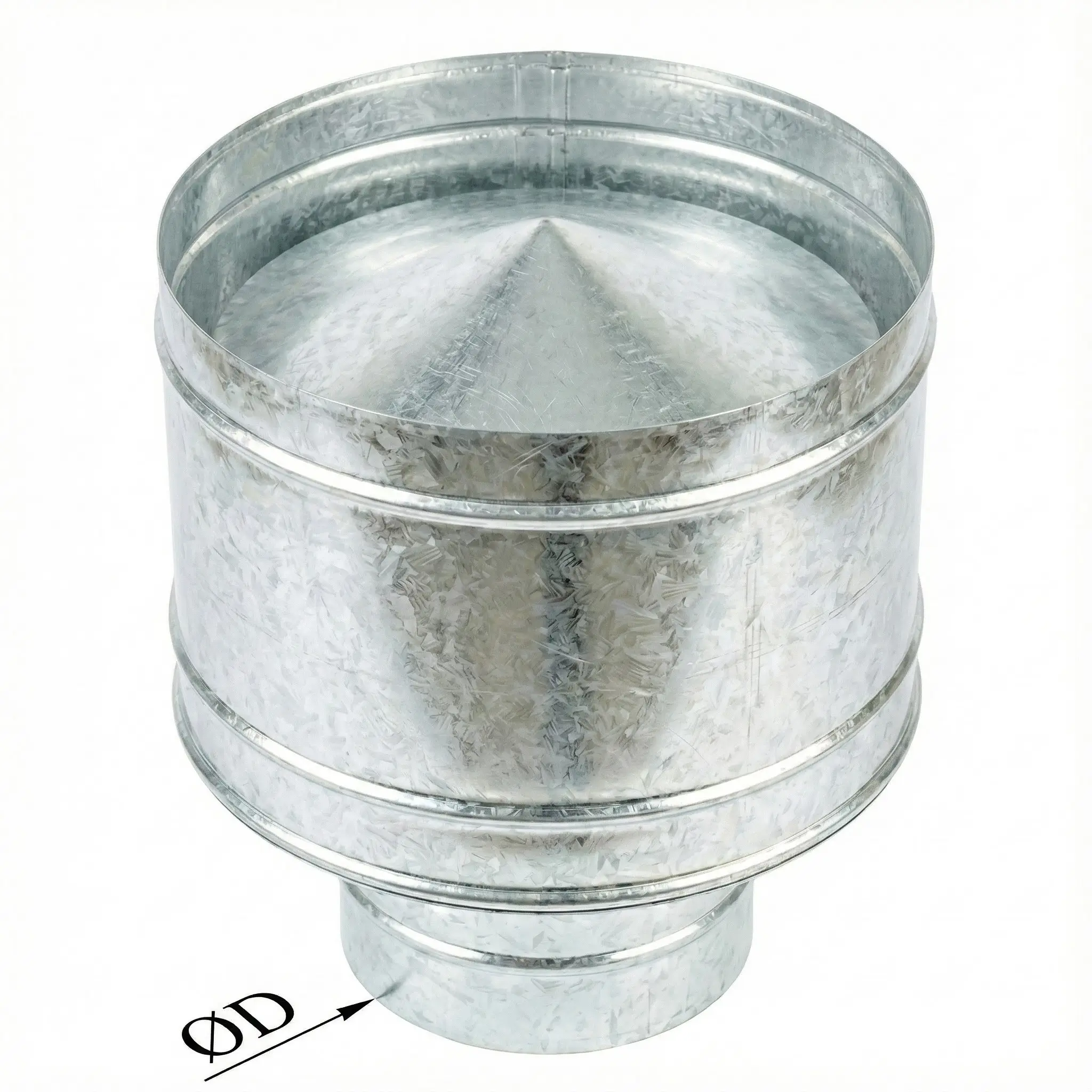 Аналогично воздуховодам, зонты также могут быть круглыми и прямоугольными. Они монтируются с воздуховодами ниппельным соединением. Типоразмер зонтов определяется размером сечения в месте стыка - параметры стыкуемых воздуховода и зонта должны быть соразмерными. Козырек изделия может иметь различные габариты. Возможно изготовление как типовых, так и нестандартных зонтов.